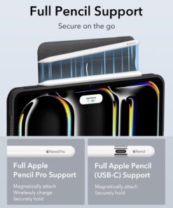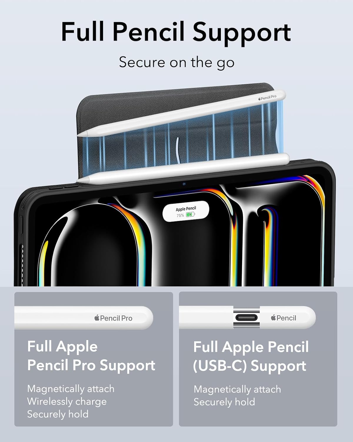 - Supports Pro and Pencil(USB-C): this iPad Pro case fully supports Pencil Pro and Pencil(USB-C) with a recessed side groove for magnetic charging and a magnetic clasp to keep your Pencil secure