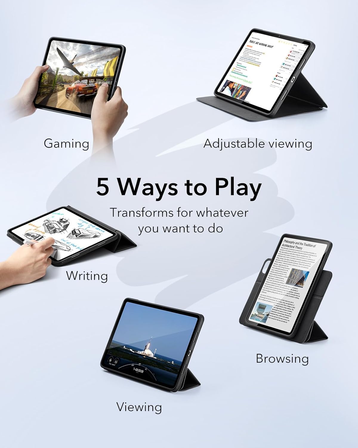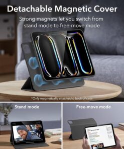 - Detachable Magnetic Cover: the strong magnets in the cover of this iPad Pro 13 case make it easy to attach to the back case and fold it up into a stable stand with multiple landscape and portrait modes, or remove it completely for better ergonomics while gaming